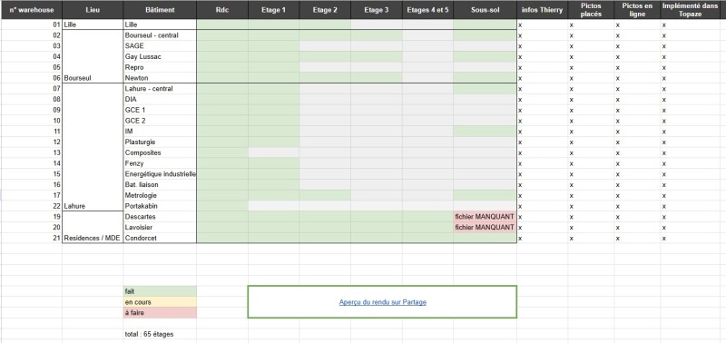 Envoyer la vue du dessus de chaque étage au responsable sécurité pour le repérage sur place