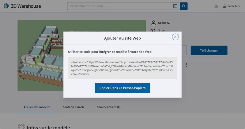 Sauvegarder le plan de l’étage regroupant les mêmes types d’éléments de sécurité (ex : les sorties de secours du 1er étage de tel bâtiment) et le mettre en ligne (Warehouse de Sketchup)
